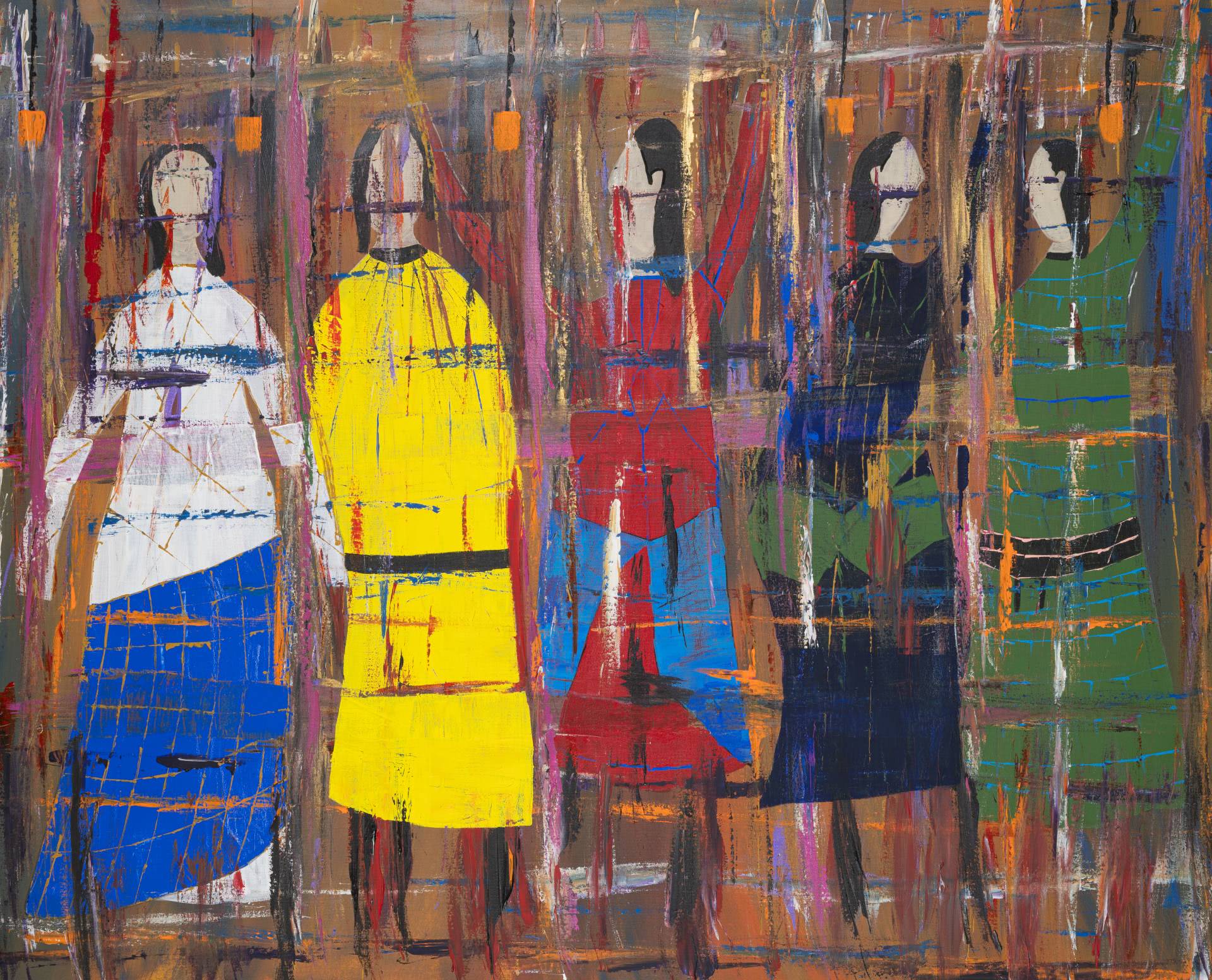 The painter’s urgency to connect with others have thus increased, and amidst this complex tapestry of experiences, Zarour now seeks to convey a message of resilience and unity, celebrating the boundless energy and richness that stem from diverse gatherings and cross-cultural exchanges.